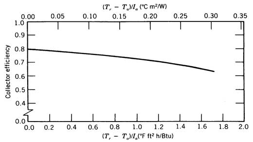 The test results presented in Figure 9.27 also reveal the rather large impact that component degradation can have on collector performance. The first series of tests were performed on a FMSC (curve 1 of Figure 9.27) having mirror facets whose specular reflectance had degraded to 0.88 from an initial specular reflectance of 0.92 before testing. Installation of new mirrors with a specular reflectance of 0.95 resulted in the sharp increase in collector efficiency reported in Figure 9.27 as curve 2.